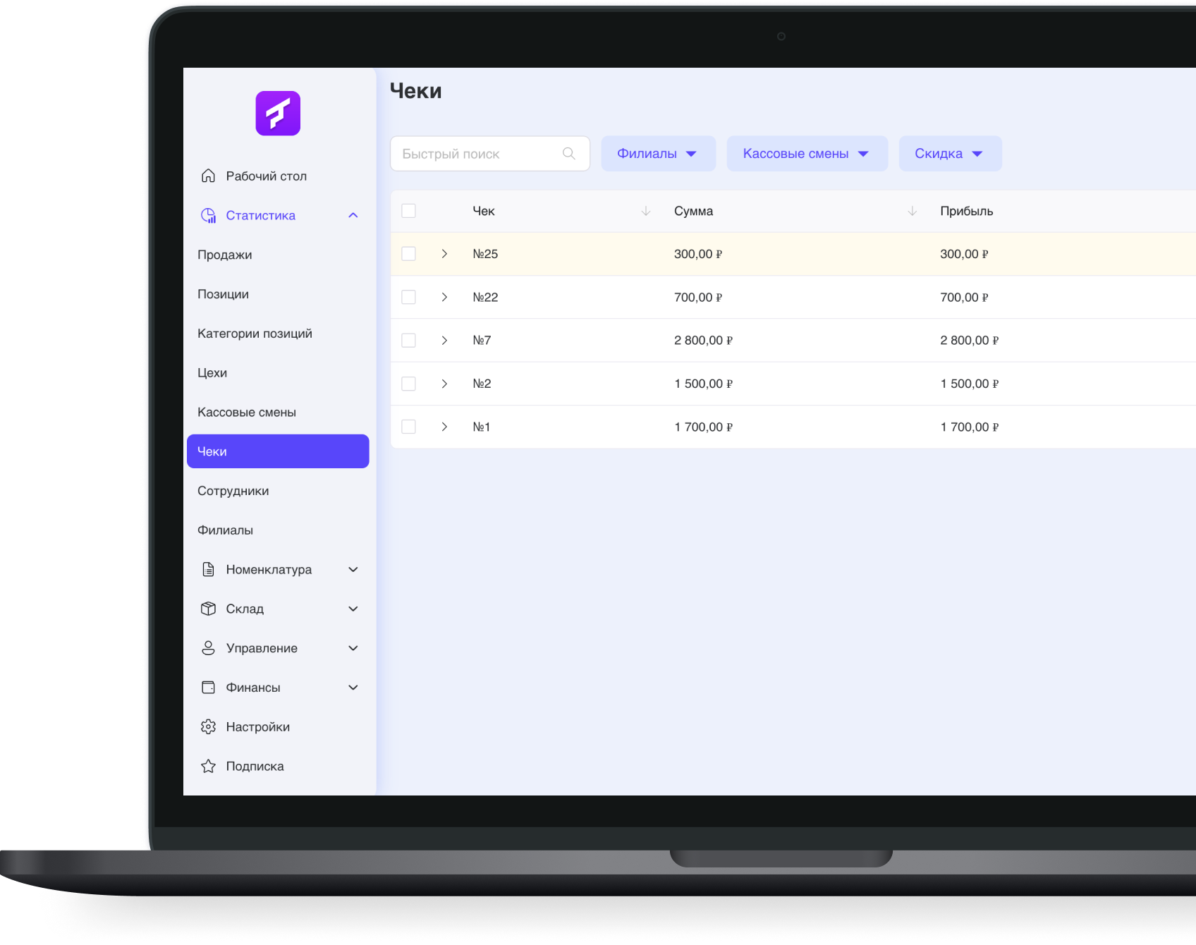 Контролируйте всё предприятие в одном кабинете — аналитика, финансы, маркетинг, меню, склад и сотрудники.