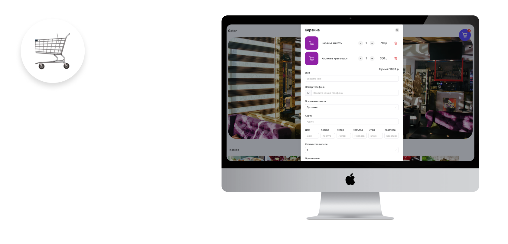 Полноценное меню с возможностью онлайн-заказа для Ваших клиентов. Заказы поступают на почту.